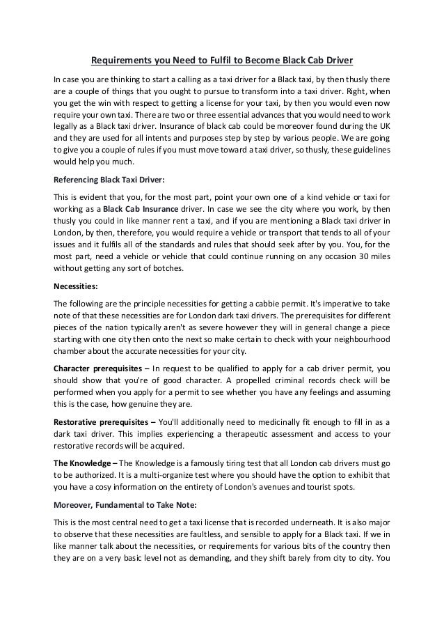 for "How To Become A Taxi Driver - There are no specific educational qualifications needed to be a taxi driver."
